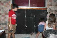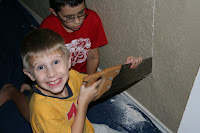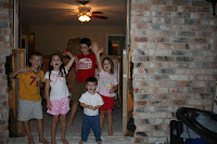 So… you can imagine what really goes on when Daddy is left to himself with 5 kiddos. Yep, you guessed it, a wall came tumbling down. We have been remodeling our home since we bought it. The past owners enclosed the patio to make a game room. We took the game room and split it to make a office. Then we wanted to make a door from our bedroom to our office. My hubby decided to do this while mommy was in Dallas. How sweet!